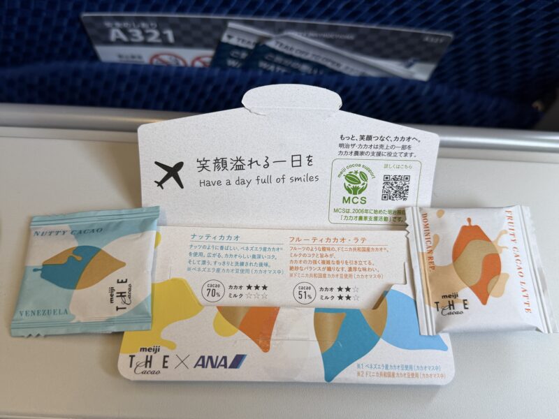 飛行機に乗ったら「チョコ」頂けた。