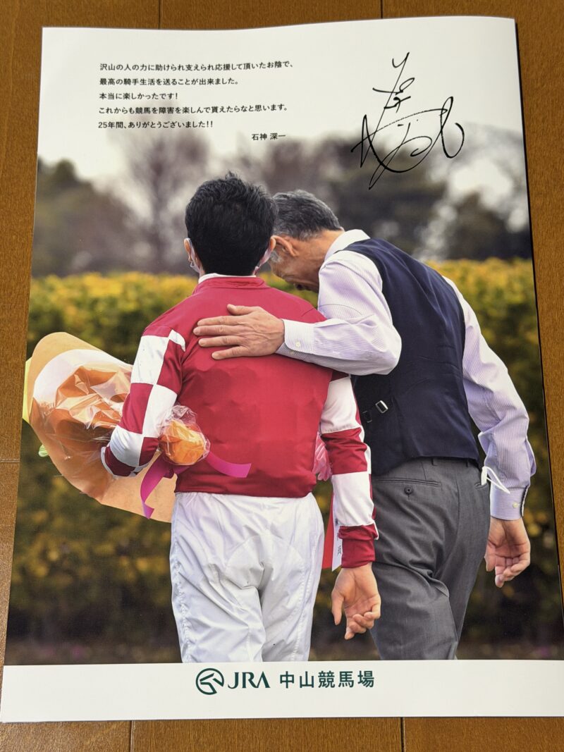 中山競馬場とザ・ロイヤルファミリー スポーツ 2026.04.11 本日 お昼過ぎに 中山競馬場というのも、先日 今月末で騎手引退発表のあった「石神騎手」のメモリアルブックレットをGETするため。 中山競馬場の障害G1と言えば、この騎手だったもので・・・。 ブックレットも無事GETかわいいぬいぐるみコーナーも見て帰ってきました。 帰宅して、宅急便受領予約していた「ザ・ロイヤルファミリー」届いた とにかく、「特典映像」を早く見たい。特にハプニング集週末の楽しみが出来た~。 \ 最新情報をチェック / FacebookXBlueskyHatenaCopy