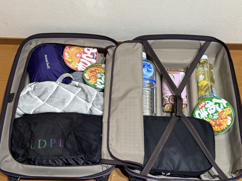 函館行くときの荷物 プラス カップうどん&そば・ミネラルウォーター