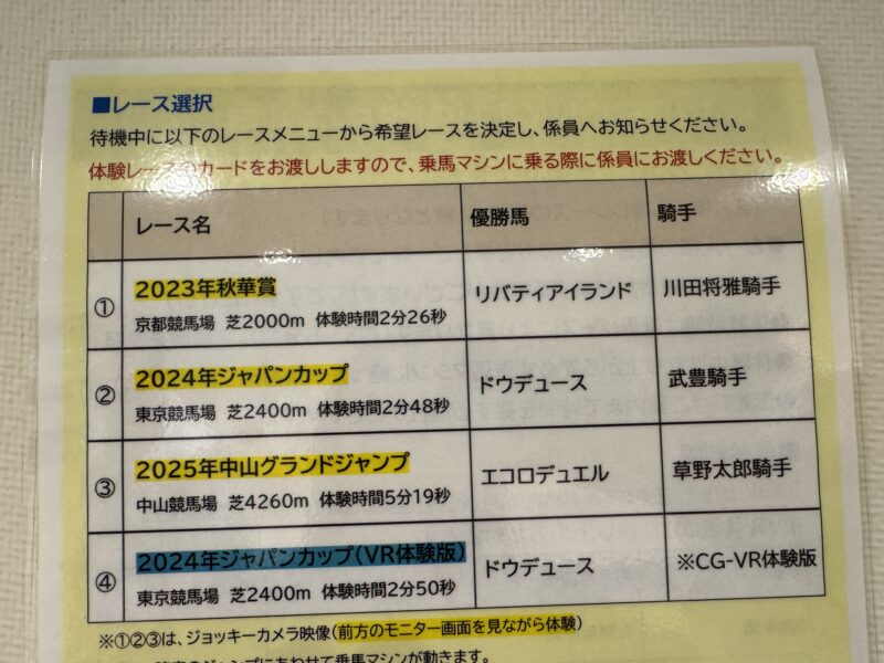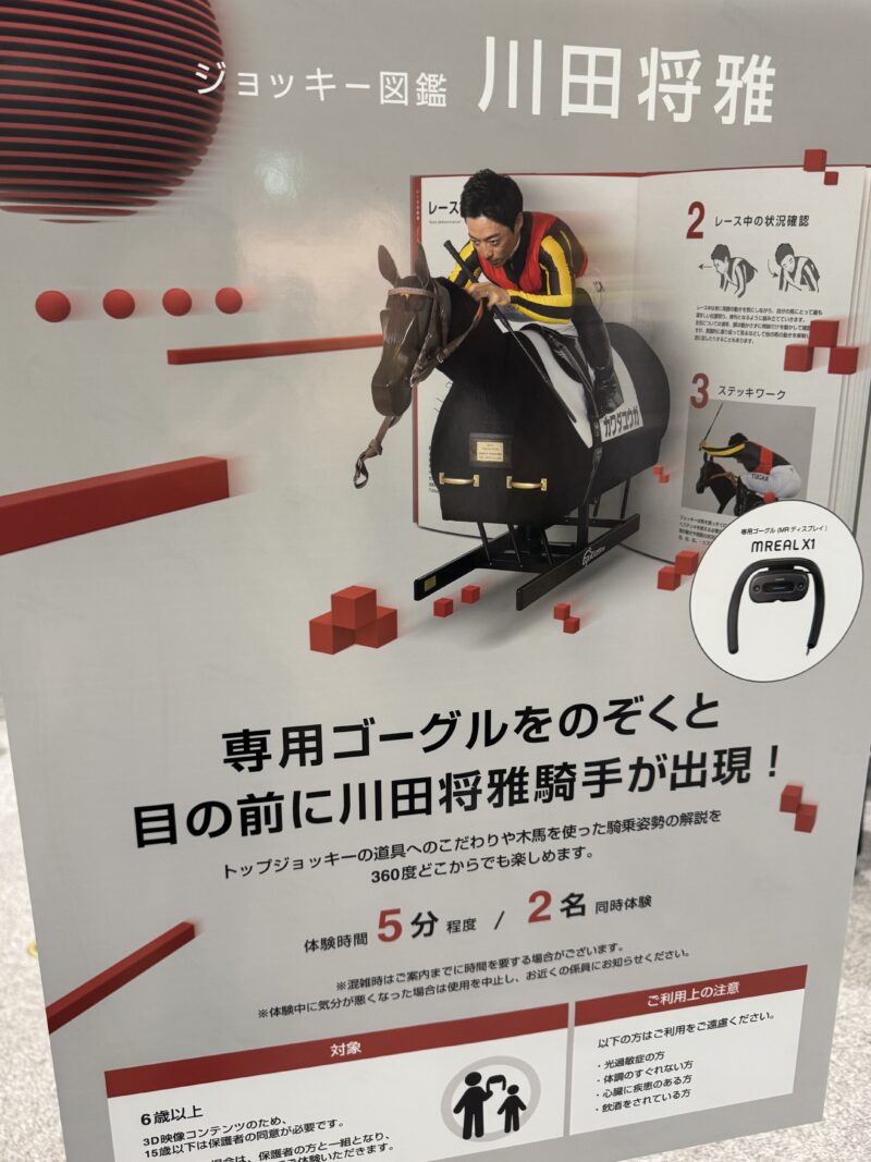 JRAの公式Xで案内は出ていて、乗馬マシーンでG1体験ができる・・・とだけ判っていました。