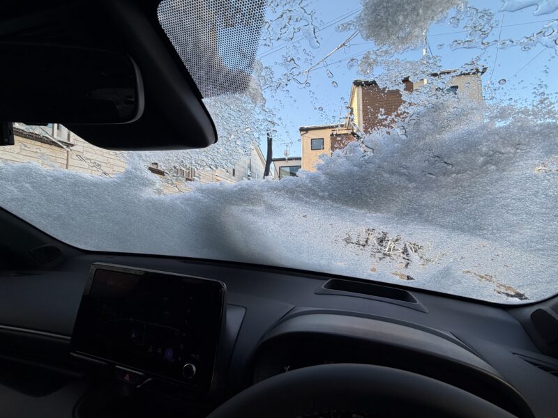 仕方ないので、車内暖房を25℃に設定し、内側から暖め作戦